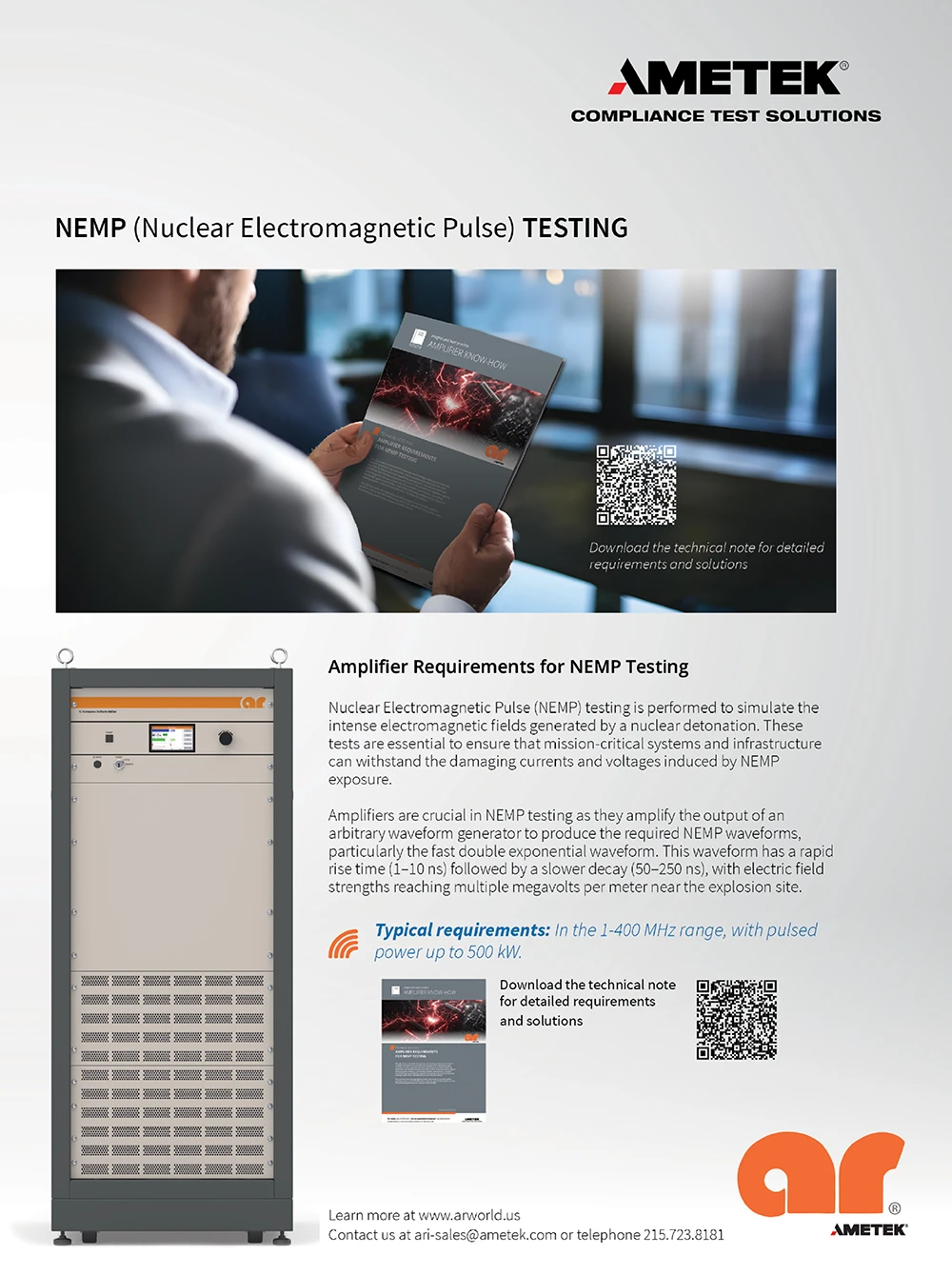 Contact us at ari-sales@ametek.com or telephone 215.723.8181