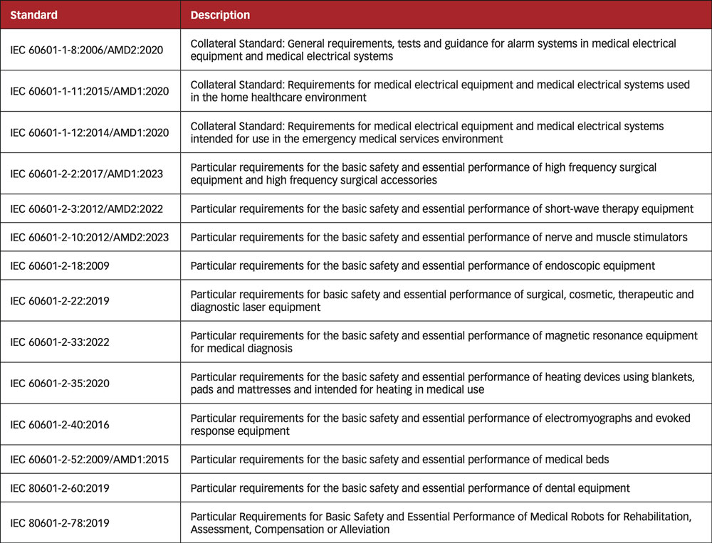 Table 1: Example of 60601-1 series of Collateral and Particular Standards [2]